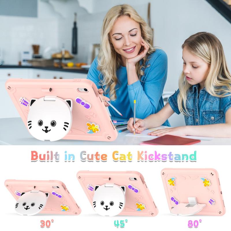 Cute Cat Hybrid Case with Kickstand, Shoulder Strap & Stylus Holder for iPad (2022), iPad (2025)