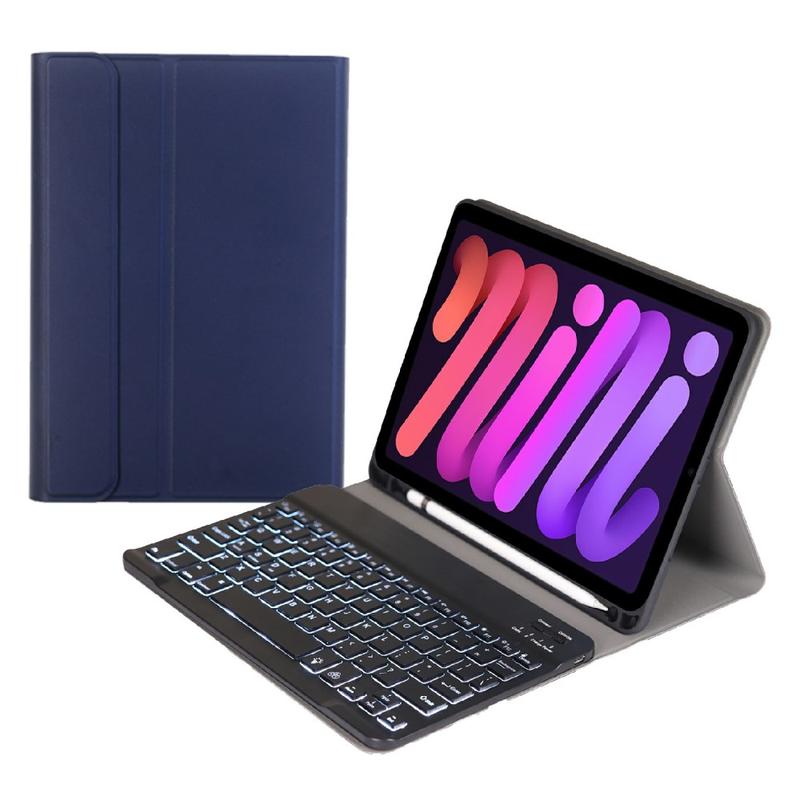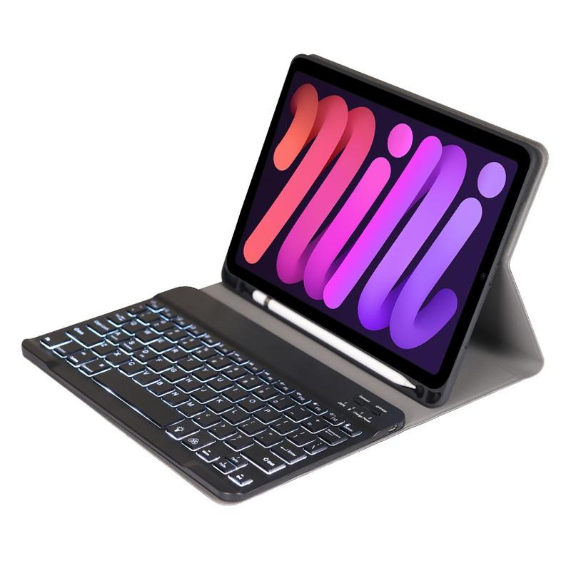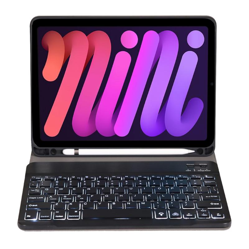 Enhance your iPad Mini (2021), iPad Mini (2024) with the Bluetooth keyboard case, a multifunctional 2-in-1 accessory that combines protection, productivity, and style. Crafted from premium polyrethane, this sleek case provides full protection against scratches, shocks, and fingerprints while maintaining a professional look. The Bluetooth keyboard connects wirelessly for smooth, responsive typing, while the integrated touchpad supports multi-gesture control for effortless navigation. Featuring a backlit keyboard, you can type comfortably even in low-light environments. The built-in adjustable stand offers an ergonomic viewing angle, making it perfect for typing, streaming, or reading. Designed for business, travel, or everyday use, this keyboard case transforms your tablet into a portable workstation.