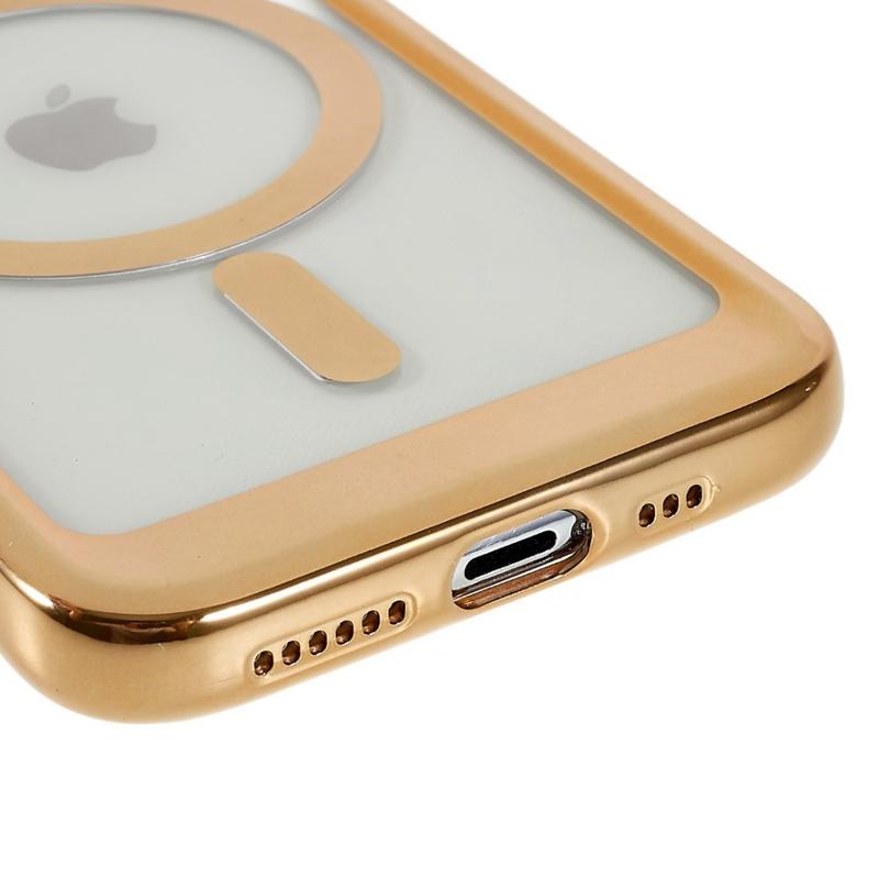 Enhance your iPhone 11 Pro Max with this electroplating magnetic TPU phone case, designed to preserve the device’s sleek aesthetic while providing robust everyday protection. Its crystal-clear design showcases your phone’s original style, complemented by a distinctive metallic edging for a polished finish. With support for magnetic wireless charging and dedicated camera protection, this case excels in both functionality and modern appeal.
