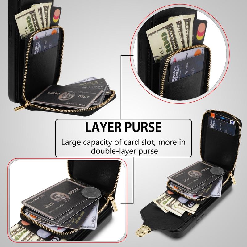 Carry your phone, cards, and cash in one sleek accessory with this wallet zipper case for iPhone 15. Made with durable TPU coated in premium polyurethane leather, it offers everyday protection while replacing the need for a separate wallet. Perfect for those who want style, convenience, and security in one.