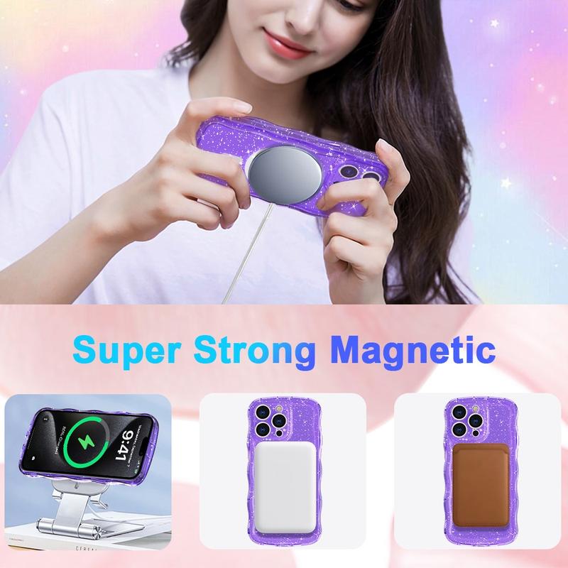 Wave-Edge Laser Glitter MagSafe TPU Case for iPhone 15 Pro