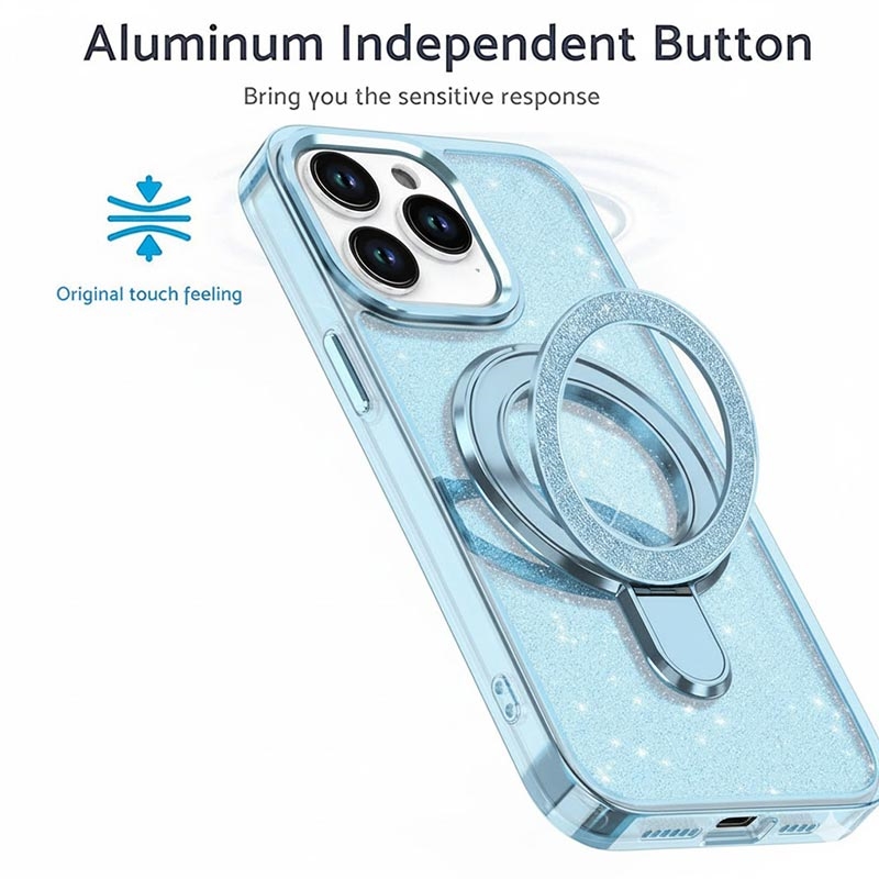 Glitter Case with Kickstand for iPhone 15 Pro - MagSafe Compatible TPU + PC Hybrid Kickstand Cover