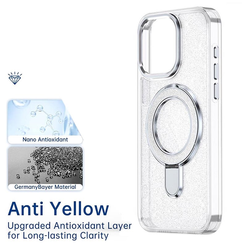Glitter Case with Kickstand for iPhone 15 Pro - MagSafe Compatible TPU + PC Hybrid Kickstand Cover