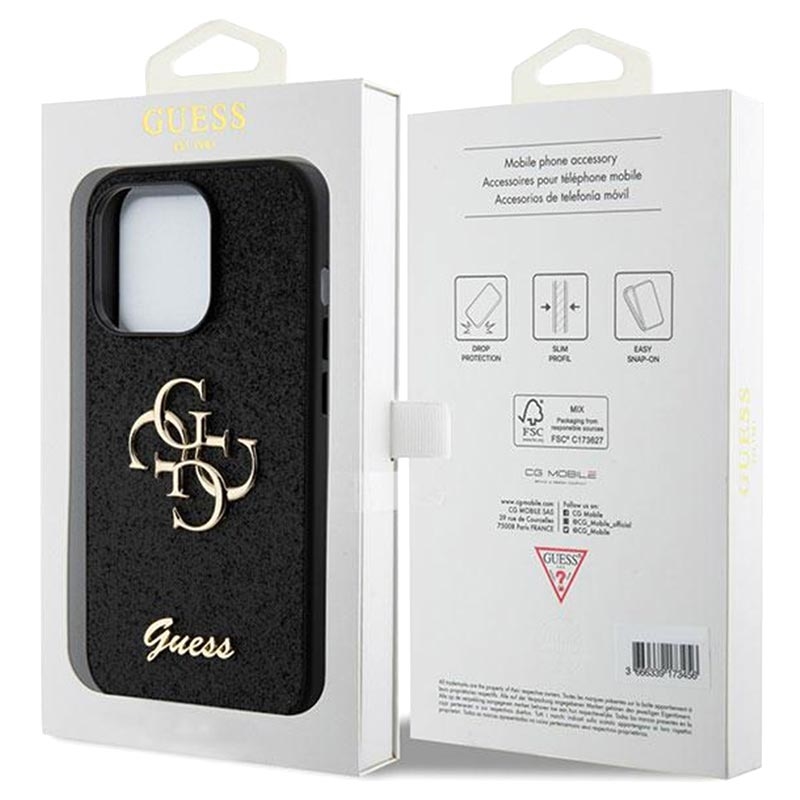 - Spectacular Guess Fixed Glitter 4G Metal Logo cover for iPhone 15 Pro