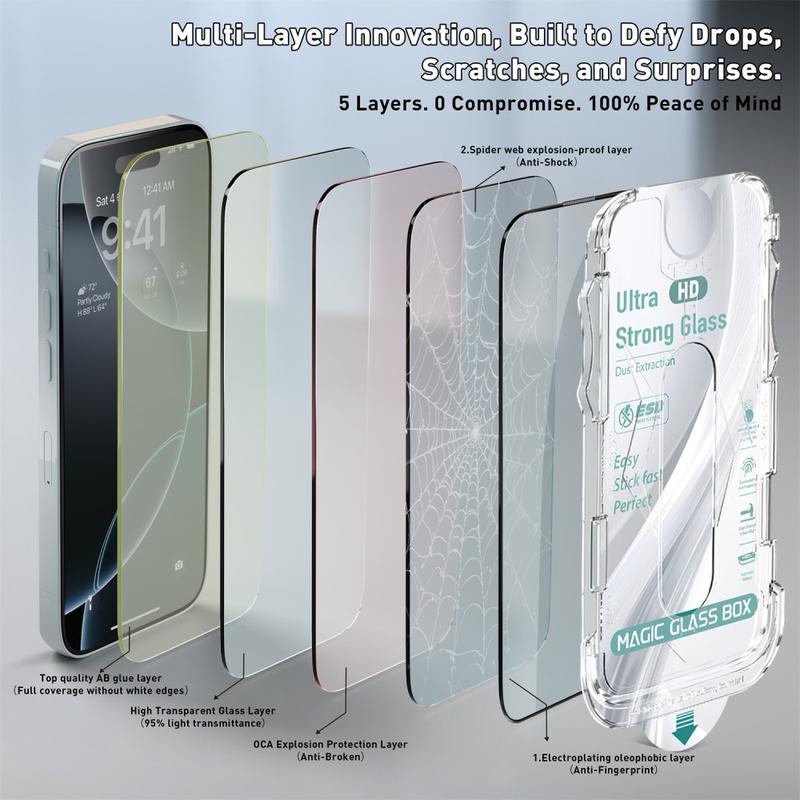 Whether for work, gaming, or travel, this protector ensures your iPhone 16, iPhone 15 stays safe from scratches, fingerprints, and accidental drops, while the installation tool makes applying it at home quick and professional.