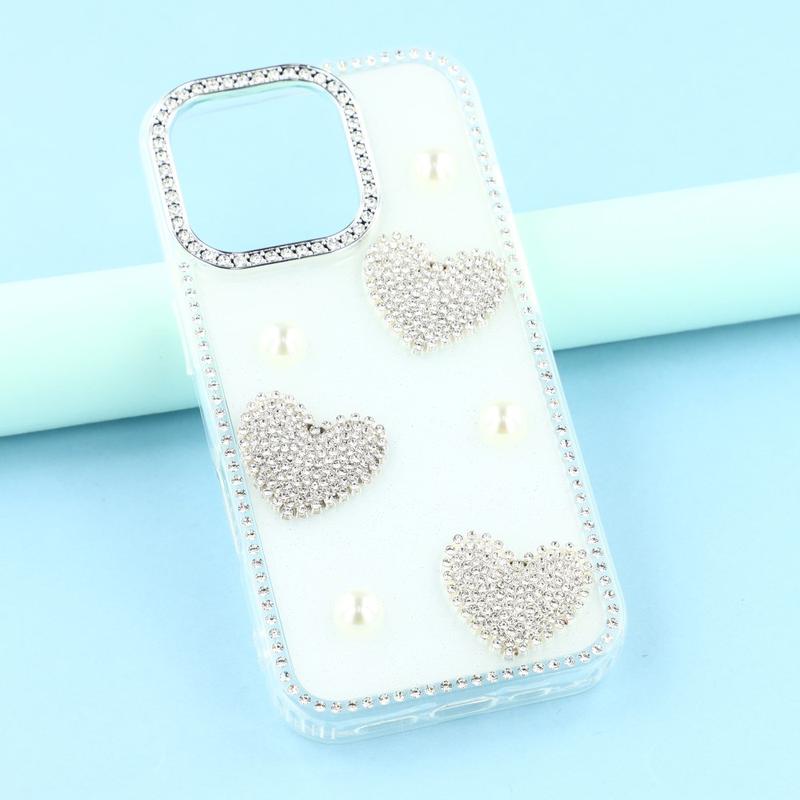 This iPhone 16 Pro case combines reliable everyday protection with glamorous style. Featuring shimmering rhinestones around the edges and sparkling pearl heart decorations on the back, it turns your iPhone 16 Pro into a fashionable accessory while keeping it safe from scratches and bumps.
