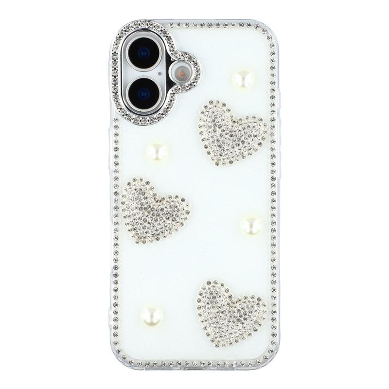 This iPhone 16 case combines reliable everyday protection with glamorous style. Featuring shimmering rhinestones around the edges and sparkling pearl heart decorations on the back, it turns your iPhone 16 into a fashionable accessory while keeping it safe from scratches and bumps.