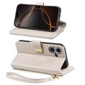 Floral & Leaf Pattern Wallet Case with Zipper Pocket & Wrist Strap for iPhone 17