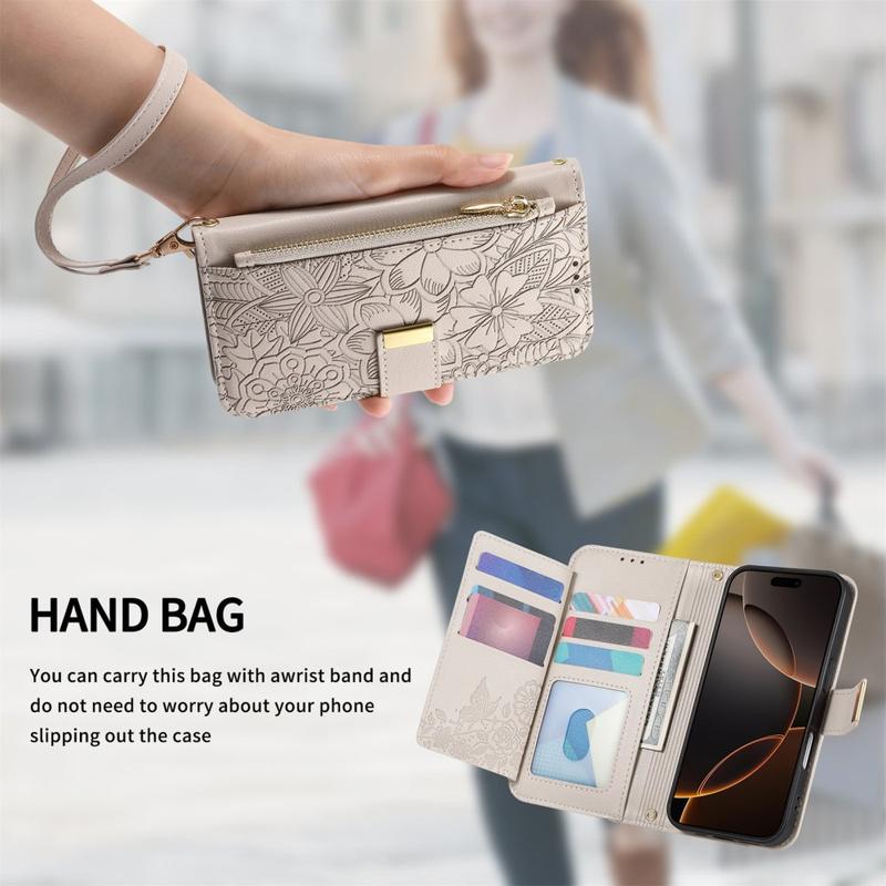 Unlike ordinary iPhone 17 cases, this all-in-one wallet cover combines protection, organization, and elegance. The floral imprinting gives it a stylish edge, while the zipper pocket and wrist strap provide unmatched convenience for daily life and travel.