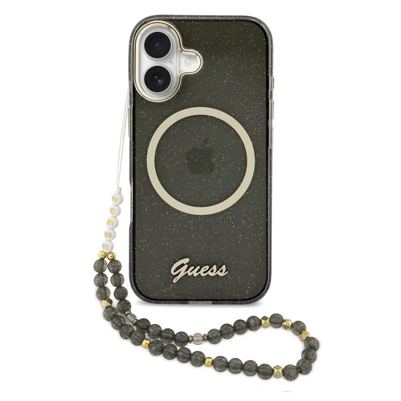 The Guess IML Glitter Script Strap MagSafe case for iPhone 17 is made for anyone who wants everyday protection with a fashion-forward finish. The case combines a hard PC back with flexible TPU sides for a comfortable grip and reliable protection against daily scratches and dust. With MagSafe compatibility, it works seamlessly with wireless charging and MagSafe accessories, so you can snap on chargers and add-ons without removing the case. The standout glitter script design and iconic Guess branding turn your iPhone 17 into a stylish accessory, while the included beaded wrist strap adds both flair and a more secure hold in your hand.