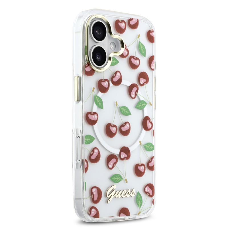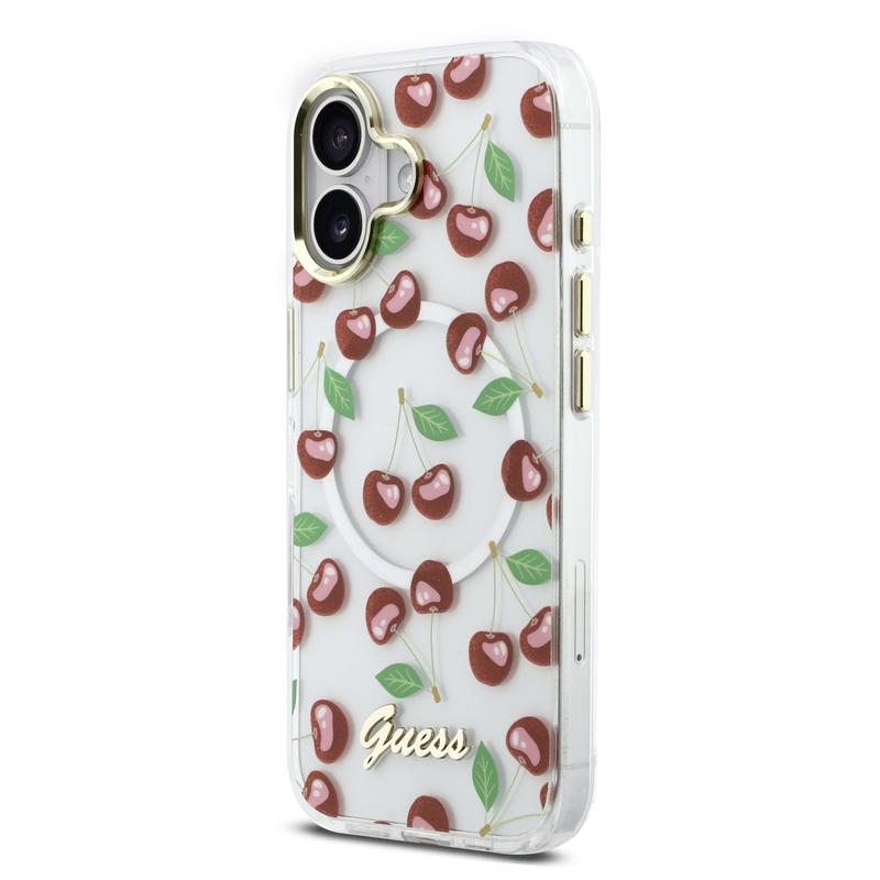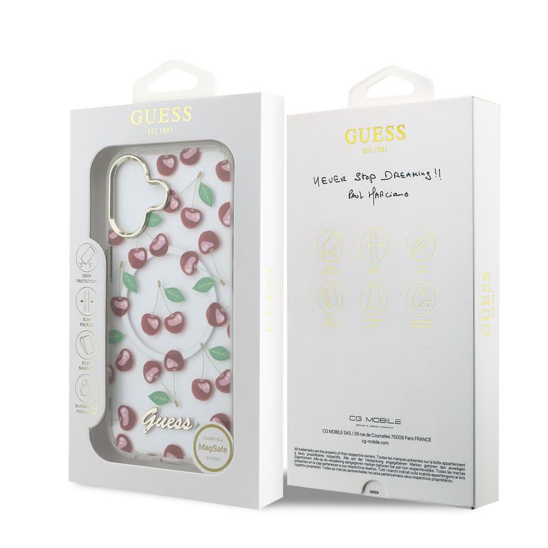 Guess IML Glitter Cherry MagSafe Hybrid Case for iPhone 17 - PC and TPU Protective Back Cover