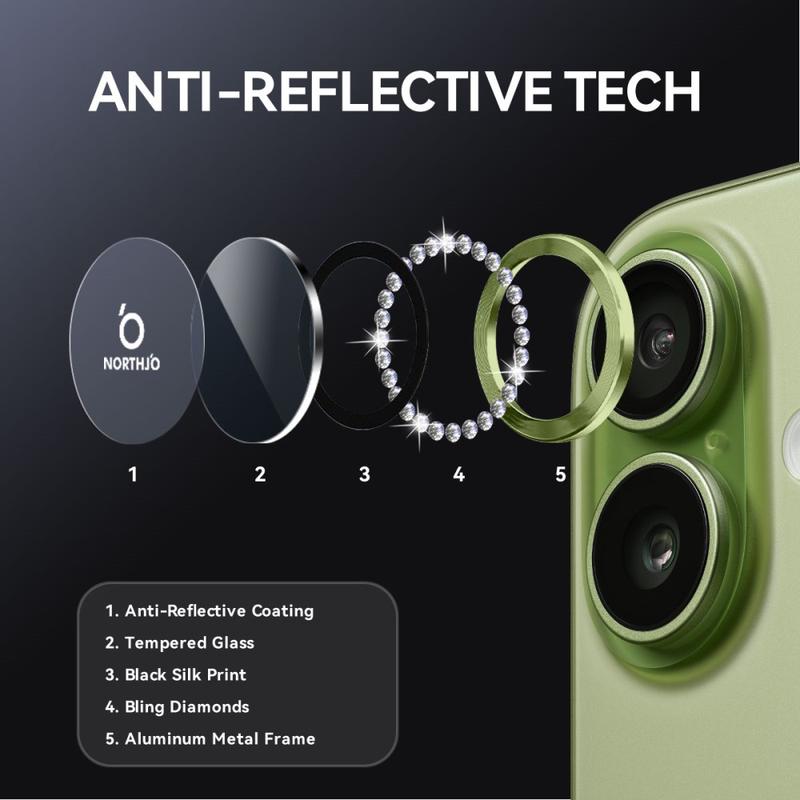 Northjo Rhinestone Tempered Glass Camera Lens Protector Set for iPhone 17