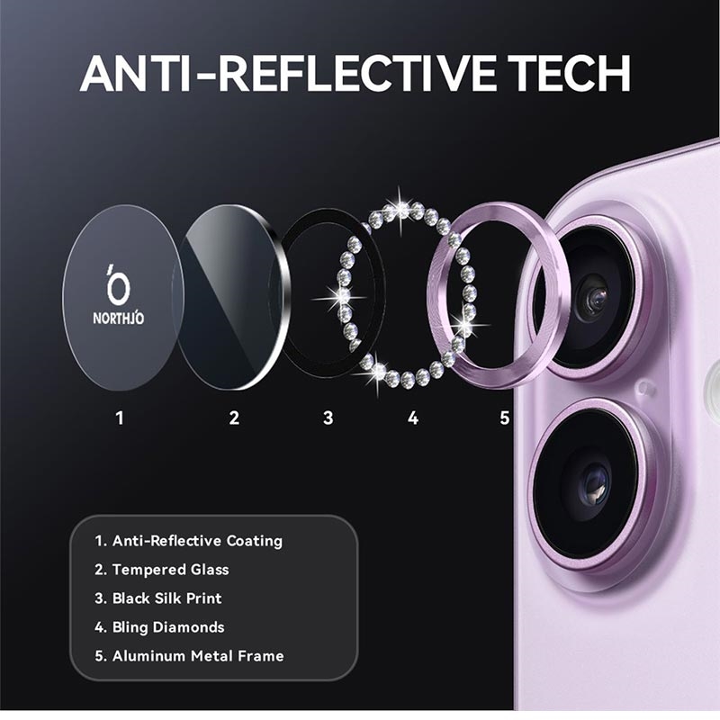 The NORTHJO Rhinestone Lens Protector offers the best of both worlds — premium sparkle and high-strength durability. It enhances your phone’s look while maintaining professional photo clarity and everyday protection.
