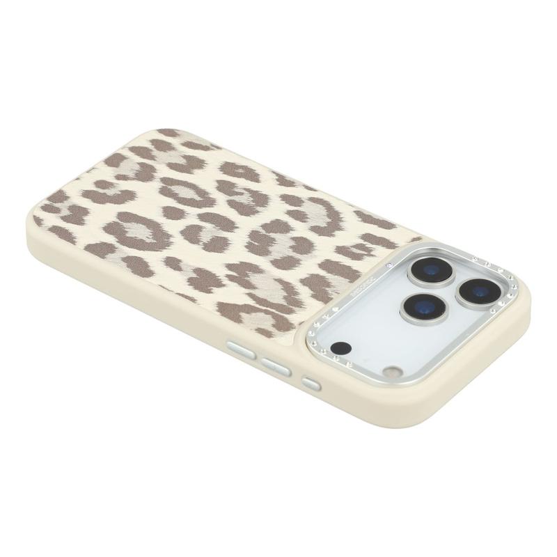 Jaucase Leopard Print Magnetic Hybrid Case for iPhone 17 Pro - PU + TPU + PC with Rhinestone Lens Frame
