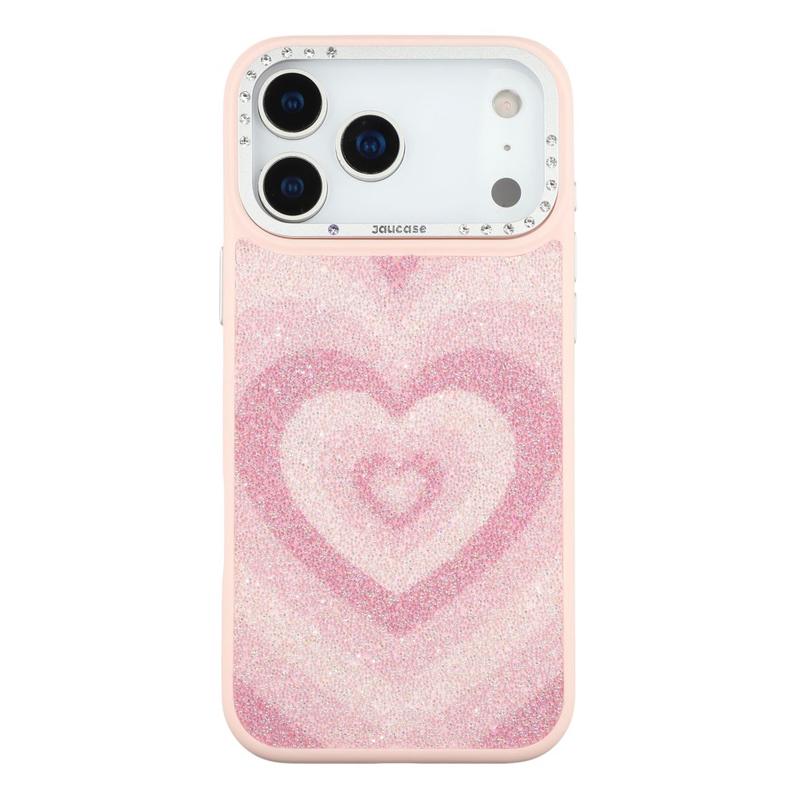 Jaucase Heart Pattern Magnetic Hybrid Case for iPhone 17 Pro Max – Polyurethane + TPU + PC with Rhinestone Lens Frame