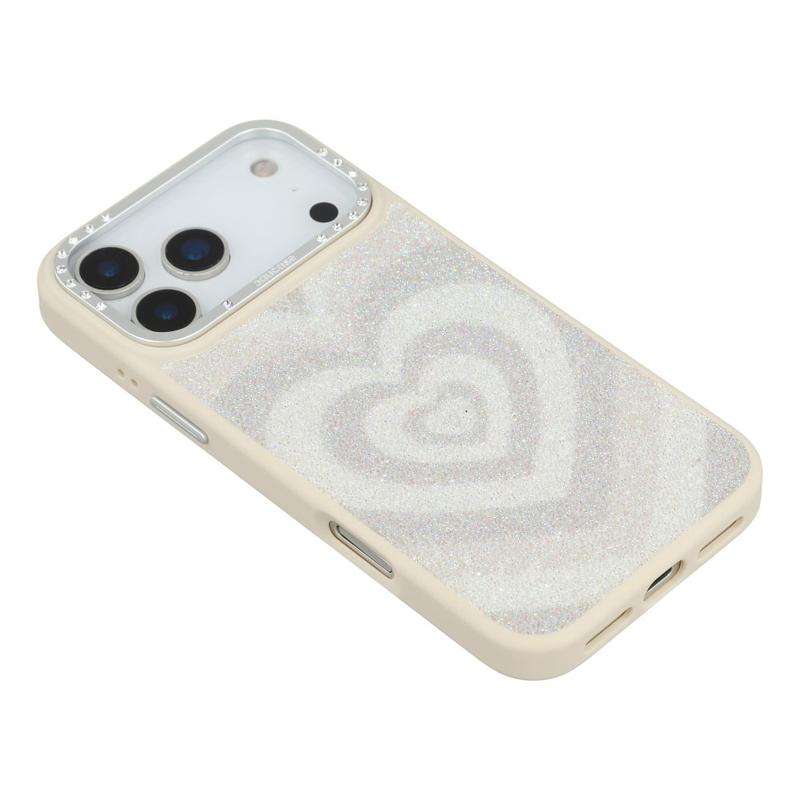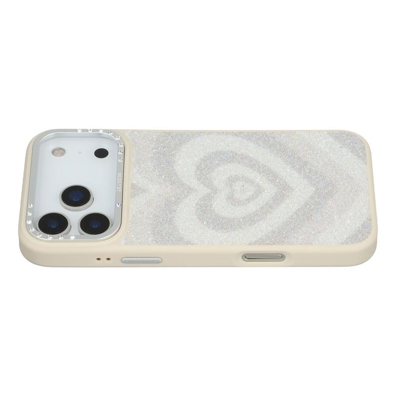 Jaucase Heart Pattern Magnetic Hybrid Case for iPhone 17 Pro – Polyurethane + TPU + PC with Rhinestone Lens Frame