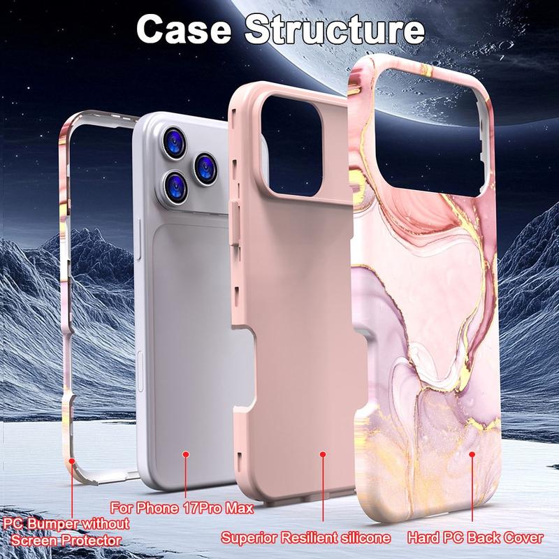 iPhone 17 Pro Max Luxury Marble Hybrid Case - Stylish PC and TPU Shockproof Phone Cover with Camera Protection
