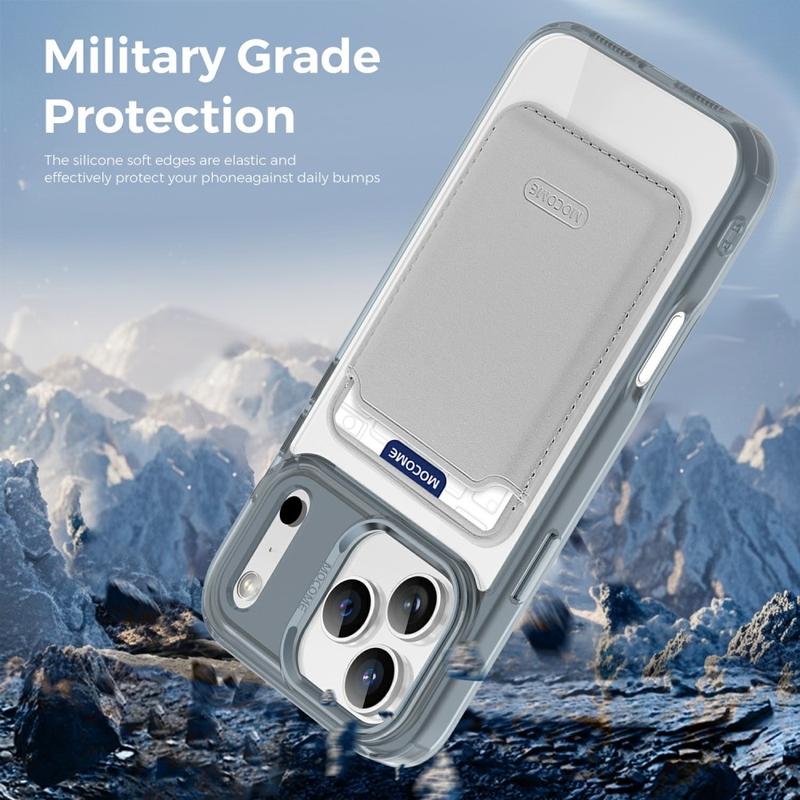 Protect your device in style with the MagSafe Case for iPhone 17 Pro Max, designed for both durability and convenience. Built with a hybrid TPU + PC construction, this case combines flexibility with strength to guard against drops, scratches, and daily wear. The integrated magnetic ring makes it fully compatible with MagSafe charging and magnetic car mounts, while the detachable dual-magnet slim card bag lets you carry 1-2 cards without adding bulk. A crystal-clear finish keeps your iPhone 17 Pro Max looking sleek and original, while reinforced edges and raised bezels ensure all-round protection for your screen and camera.