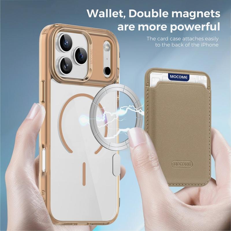 Protect your device in style with the MagSafe Case for iPhone 17 Pro Max, designed for both durability and convenience. Built with a hybrid TPU + PC construction, this case combines flexibility with strength to guard against drops, scratches, and daily wear. The integrated magnetic ring makes it fully compatible with MagSafe charging and magnetic car mounts, while the detachable dual-magnet slim card bag lets you carry 1-2 cards without adding bulk. A crystal-clear finish keeps your iPhone 17 Pro Max looking sleek and original, while reinforced edges and raised bezels ensure all-round protection for your screen and camera.