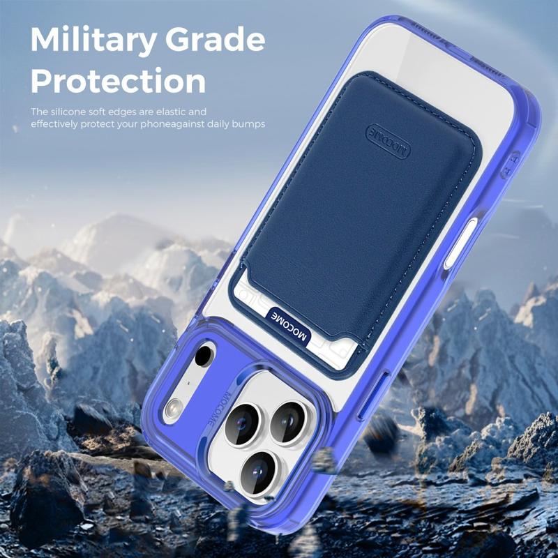Protect your device in style with the MagSafe Case for iPhone 17 Pro Max, designed for both durability and convenience. Built with a hybrid TPU + PC construction, this case combines flexibility with strength to guard against drops, scratches, and daily wear. The integrated magnetic ring makes it fully compatible with MagSafe charging and magnetic car mounts, while the detachable dual-magnet slim card bag lets you carry 1-2 cards without adding bulk. A crystal-clear finish keeps your iPhone 17 Pro Max looking sleek and original, while reinforced edges and raised bezels ensure all-round protection for your screen and camera.
