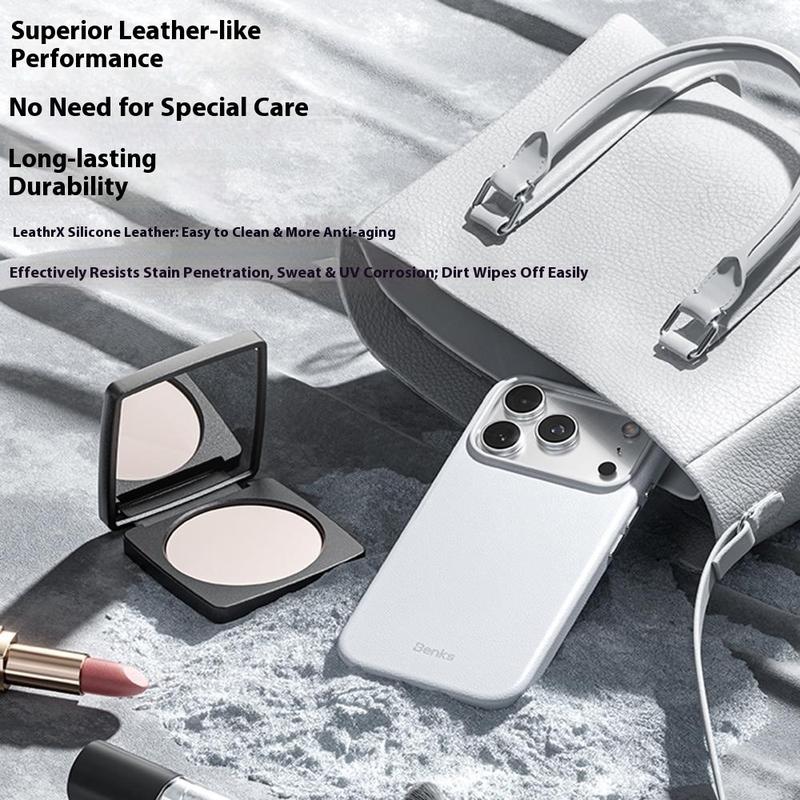 Protect your phone in premium style with the BENKS Q2 MagSafe case for iPhone 17 Pro. Expertly crafted from a microfiber leather exterior, a rigid PC frame, and a soft silicone interior, it delivers a luxurious feel while offering full-body protection. The innovative N52 rare-earth magnetic matrix enhances MagSafe compatibility, ensuring a strong, reliable connection for chargers and accessories. Designed to resist fingerprints and sweat, this case stays clean and elegant through daily use. With its slim profile, precise fit, and enhanced grip texture, the BENKS Q2 perfectly balances sophistication, comfort, and durability.