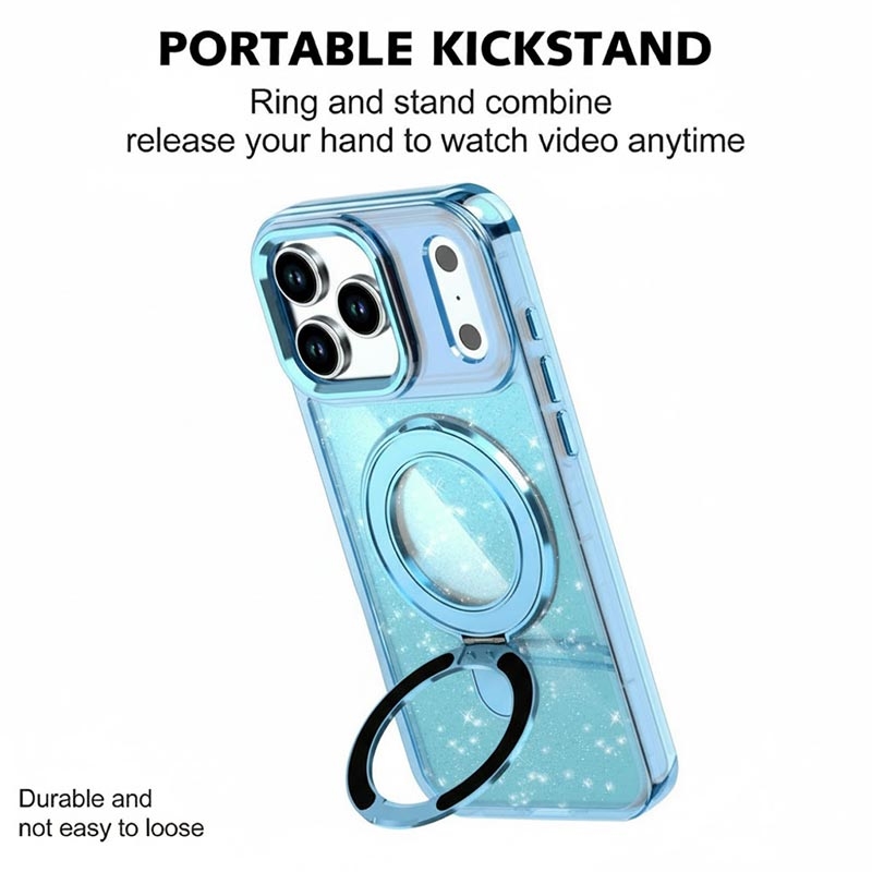 Bring style and protection together with the iPhone 17 Pro Max glitter case, combining elegant sparkle with reliable everyday durability. Made from high-quality materials and equipped with a built-in metal ring kickstand, this case keeps your phone secure, functional, and fashionable all day long.