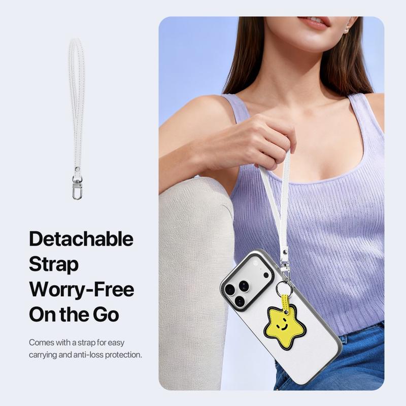 A removable strap is included for easy carrying during travel, commuting or daily activities. It provides added security against loss while giving your iPhone 17 Pro a fashionable accessory touch.