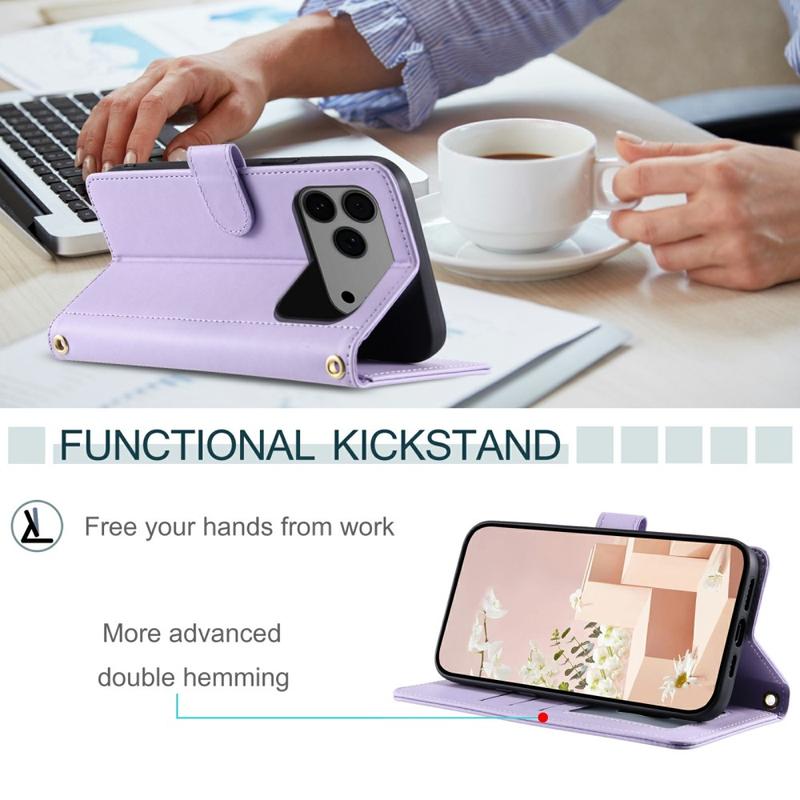 Protect your iPhone 17 Pro Max with this luxurious quilted wallet case. Constructed with TPU material coated with PU leather, this case is scratch-resistant and anti-fingerprint, keeping your phone looking stylish and sleek. The stitching line forms a rhombus grid pattern, adding a fashionable and beautiful touch to the case. The raised edge of the camera and screen offers effective protection against scratches, while the precise cutouts provide full access to all buttons, ports, and other features. The wallet design allows for easy storage of essential cards and cash. With added protection against scratches, impact, drops, and daily damage, this case also comes with a shoulder strap and wrist strap for added convenience.
