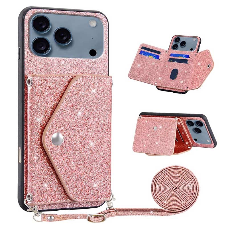The premium quality case from the Stardust series is the right choice for protecting your iPhone 17 Pro Max from any potential damage. It has a card holder on the back with a snap button which is great to store your essential cards and keep them safe. A shiny glitter surface adds a touch of glamour to your phone. In addition, the cover comes with a 150cm shoulder strap, allowing you to carry your iPhone 17 Pro Max with you wherever you go.