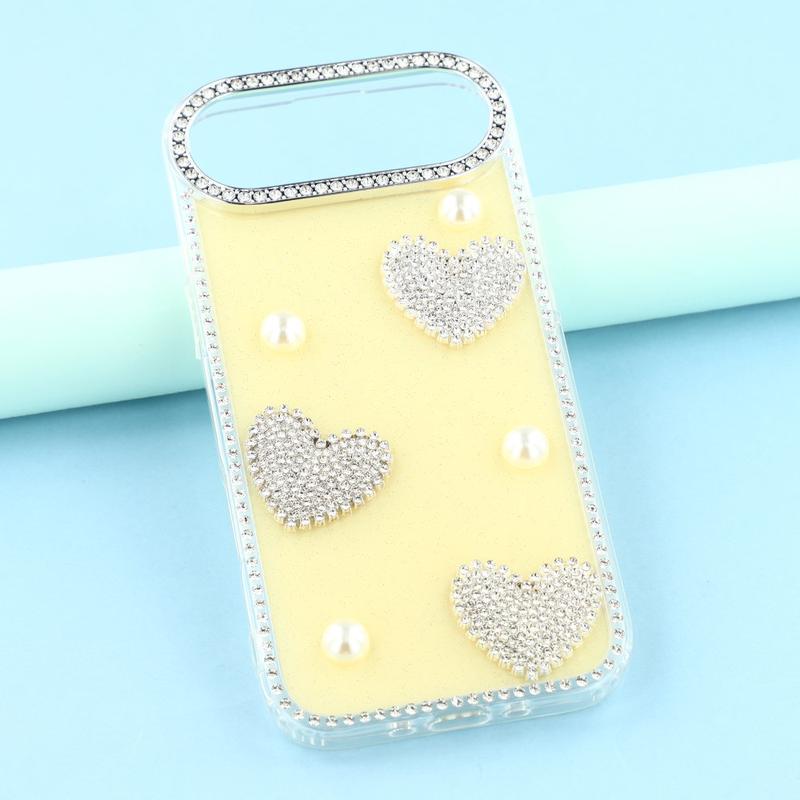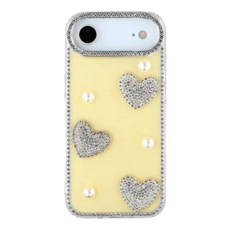This iPhone Air case combines reliable everyday protection with glamorous style. Featuring shimmering rhinestones around the edges and sparkling pearl heart decorations on the back, it turns your iPhone Air into a fashionable accessory while keeping it safe from scratches and bumps.