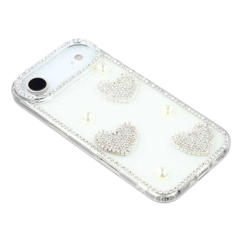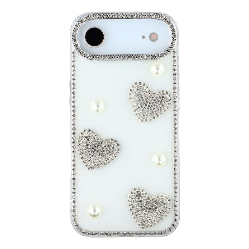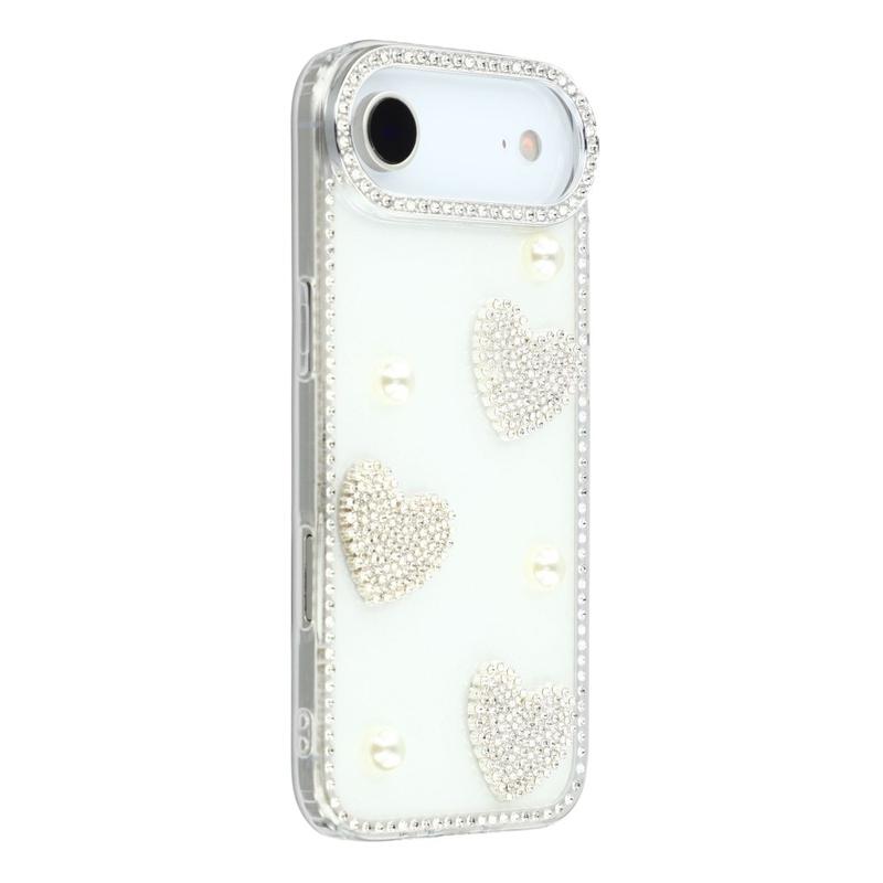 This iPhone Air case combines reliable everyday protection with glamorous style. Featuring shimmering rhinestones around the edges and sparkling pearl heart decorations on the back, it turns your iPhone Air into a fashionable accessory while keeping it safe from scratches and bumps.