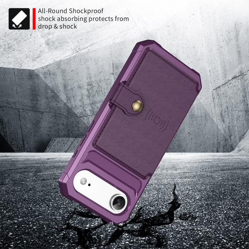 - iPhone Air wallet case has a secure snap button closure, wallet design, and several card slots with cash pocket