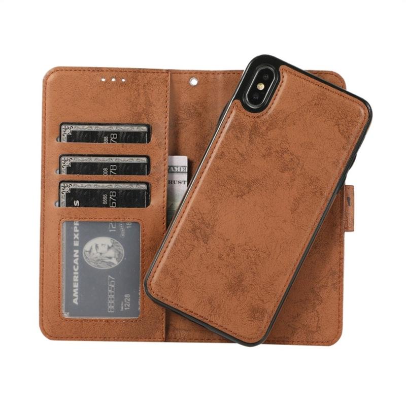 Vintage 2-in-1 Wallet Case with Removable Magnetic Cover for iPhone XS Max