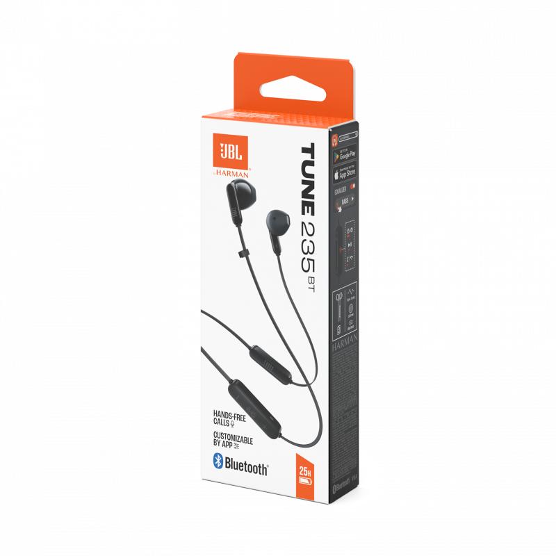 The JBL Tune 235BT delivers the signature JBL Pure Bass sound in a lightweight, comfortable in-ear design made for everyday life. Large 12.5 mm drivers bring punchy low end and clear detail for playlists, podcasts, and calls. With up to 25 hours of battery life, you can listen all day, and when you’re in a rush, 10 minutes of charging gives up to 3 hours of playback. MultiPoint connectivity lets you switch instantly between two devices—perfect if you use a phone and laptop—while Google Fast Pair connects quickly with compatible Android devices. A 3-button remote with mic, a flat tangle-free cable, and IPX4 water resistance make these a practical choice for commuting, office use, workouts, and travel. Use the JBL Headphones app to tweak EQ and access extra features.