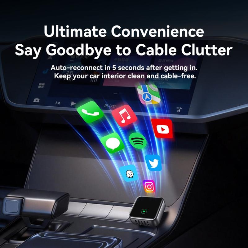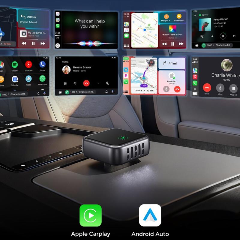 - 2-in-1 adapter supporting wireless Apple CarPlay and wireless Android Auto