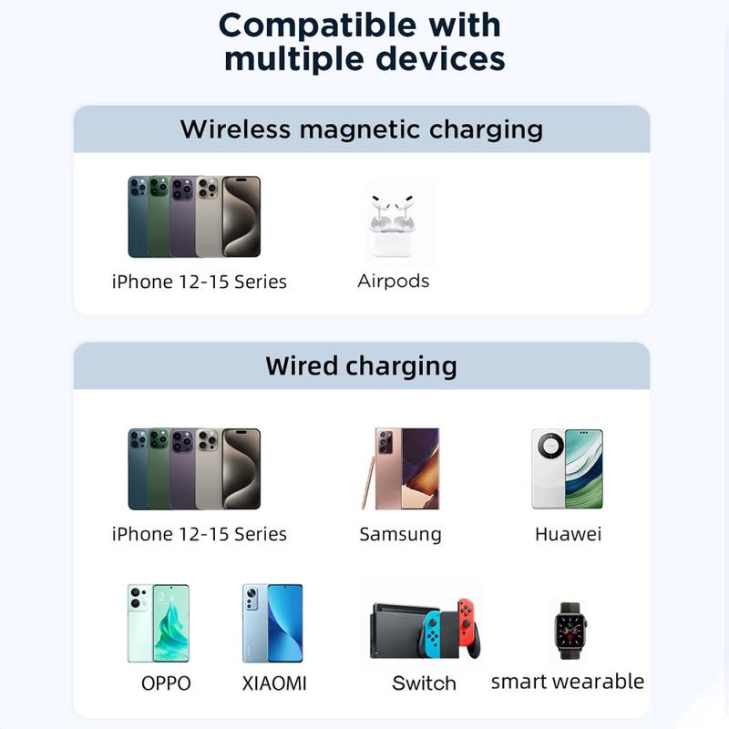 Comes with a detachable cable, can charge three devices with one cable, including for Apple/Android devices/self-charging