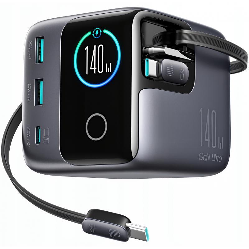 Joyroom JR-TRD01 Podix 140W Desktop GaN Charger with Retractable USB-C Cables and LCD Display