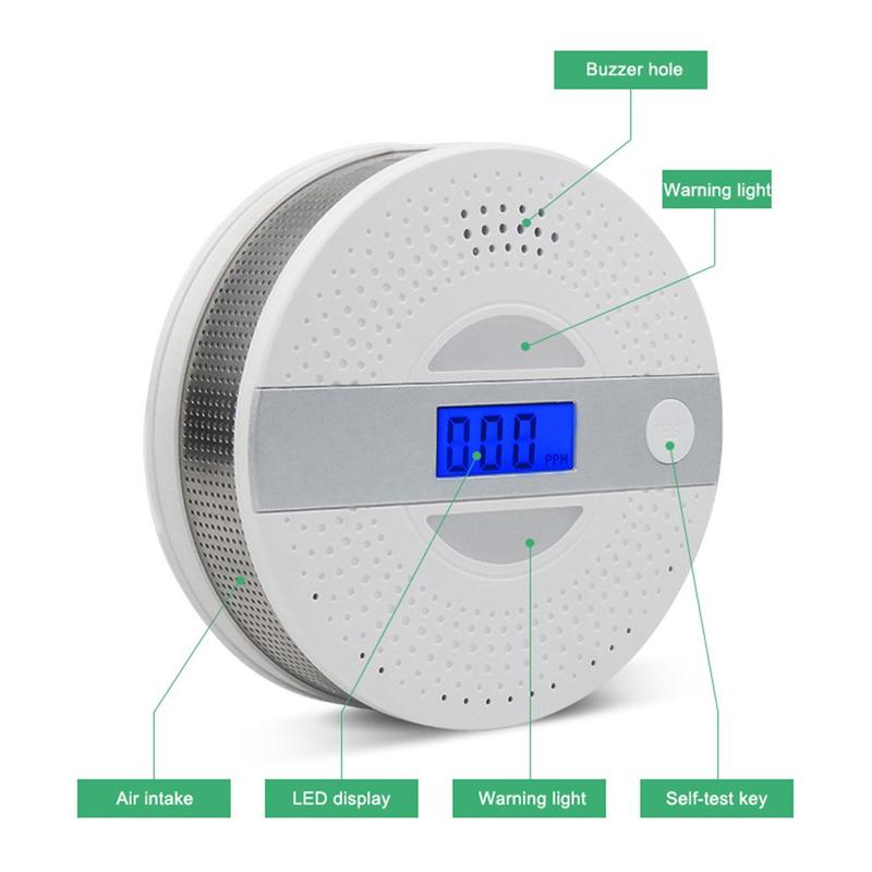 JSN-JY-909COM CO & Smoke Detector - Battery-Powered Carbon Monoxide Alarm with LCD Display and Dual Sensors