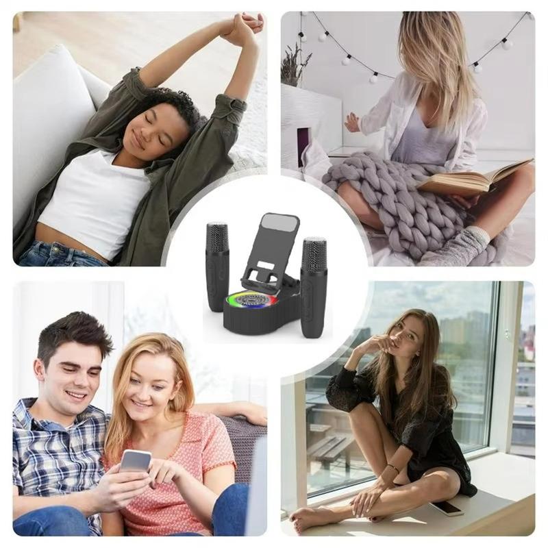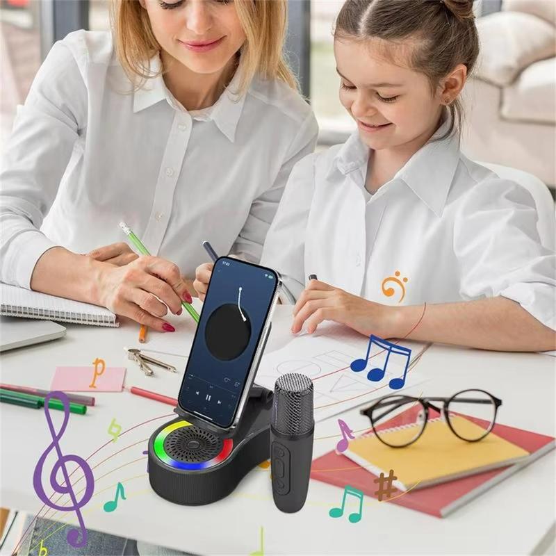 K500 Rotating Phone Stand with Bluetooth 5.3 Speaker & 2 Wireless Karaoke Microphones