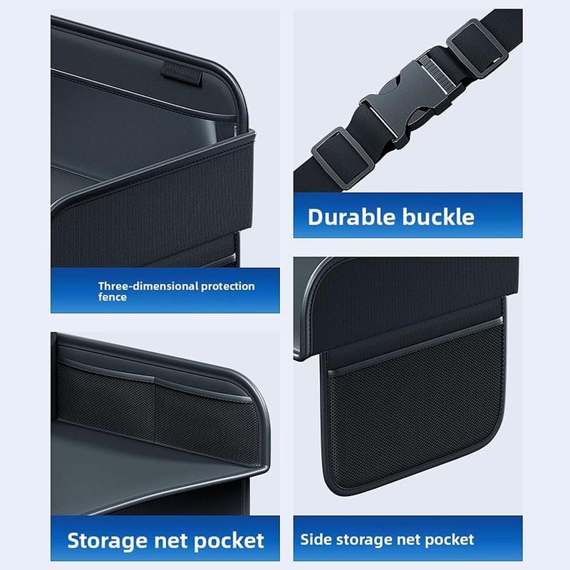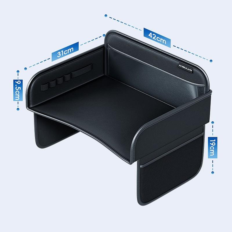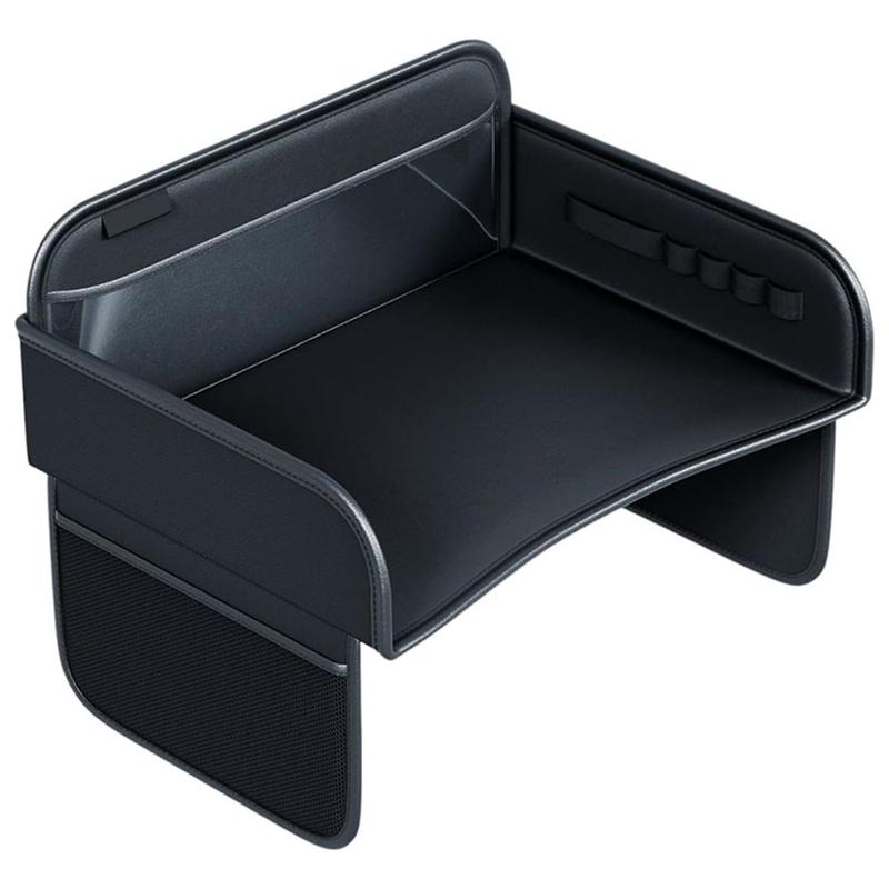 - Multifunctional design combining a kids travel tray and car seat back organizer