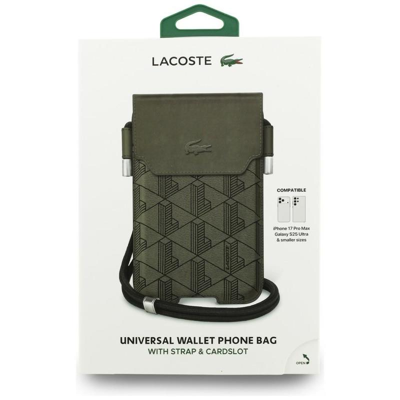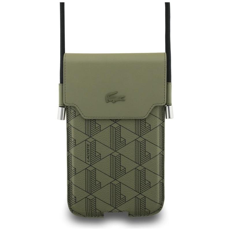 Crafted from textured polyurethane, the bag features the brand’s signature monogram and the iconic embroidered crocodile logo. A magnetic flap closure keeps your phone securely in place, while thoughtful details ensure easy access and seamless everyday use.