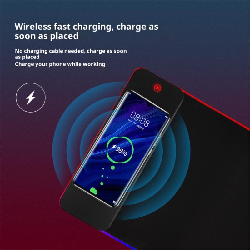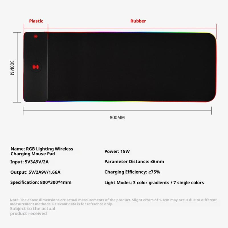 Large Anti-Slip RGB Keyboard/Mouse Pad with 15W Wireless Charger, LED Lighting - 800×300×4mm