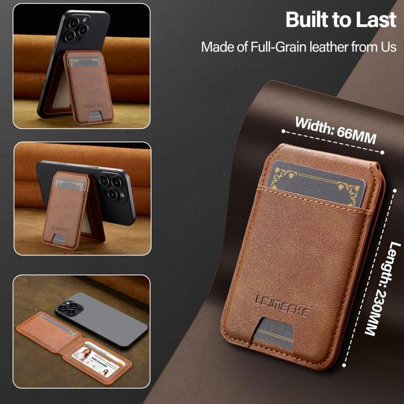 The LC.IMEEKE magnetic card holder is a slim and stylish phone accessory that combines secure card storage with everyday convenience. Designed to attach magnetically to compatible phones, it keeps your essential cards close while maintaining a lightweight profile. With an adjustable kickstand for hands-free viewing and built-in RFID protection, this wallet is ideal for daily use—whether you’re commuting, travelling, or relaxing at home.