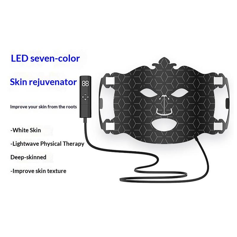 7-Color LED Skin Rejuvenation Face Mask - Silicone Light Therapy Beauty Device with 87 LED Beads and Adjustable Brightness