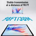 The system uses a 5GHz WiFi connection for more stable performance and reduced interference compared to crowded 2.4GHz environments. With a practical wireless range up to 30 m (line-of-sight and environment dependent), you can place your TV or projector where it looks best—without running long HDMI cables across the room.
