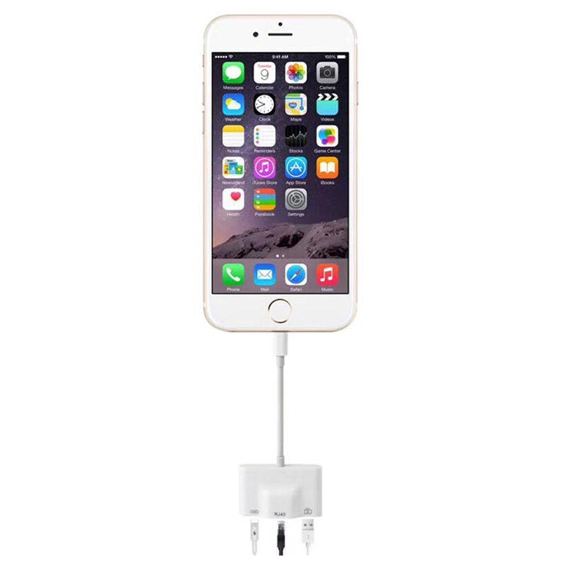 3-in-1 Lightning 8-pin / RJ45 Ethernet LAN Network Adapter with USB 2.0 / Lightning 8-pin port