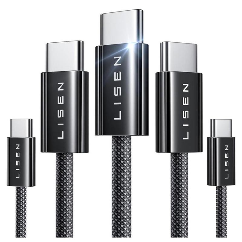 Lisen USB-C to USB-C Cable Set - 60W, 3A, Power Delivery Fast Charging, Braided Nylon, Multiple Lengths