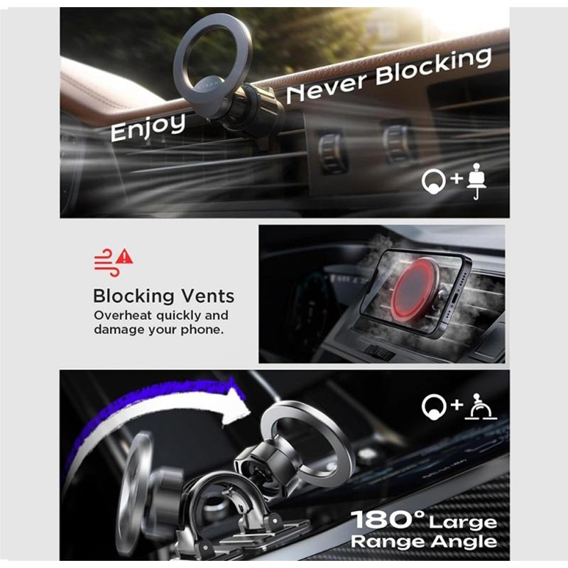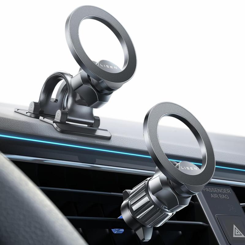 Lisen MagSafe Compatible Magnetic Car Holder - Vent and Dashboard Mount, 360 Ball Joint, Heat-Resistant Adhesive