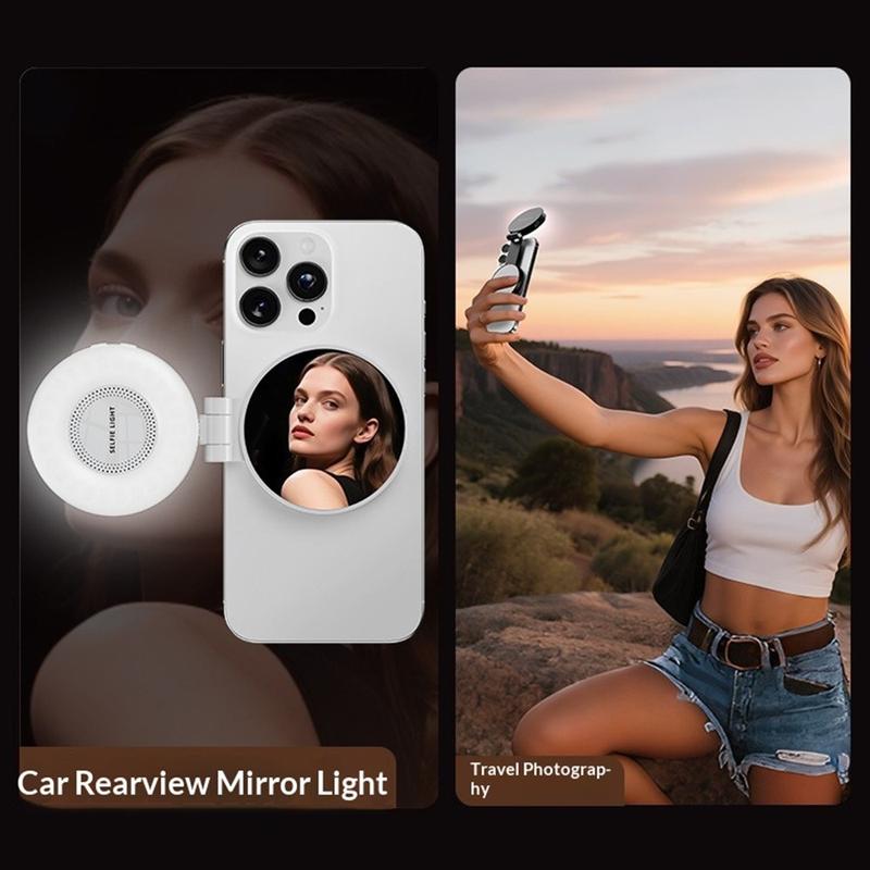 The M28 magnetic pocket LED fill light is a compact, handheld lighting tool designed for creators, photographers and anyone who wants perfect illumination on the go. Its built-in LED system supports three adjustable colour temperatures, allowing you to fine-tune the lighting for warm, neutral or cool tones depending on the scene. The integrated high-definition mirror makes it easy to preview your look or shooting angle in real time, while the magnetic attachment provides effortless mounting on smartphones and other metal surfaces. With a lightweight 108 g design and rechargeable battery, this fill light is ideal for selfies, live streaming, outdoor shooting and travel content creation.