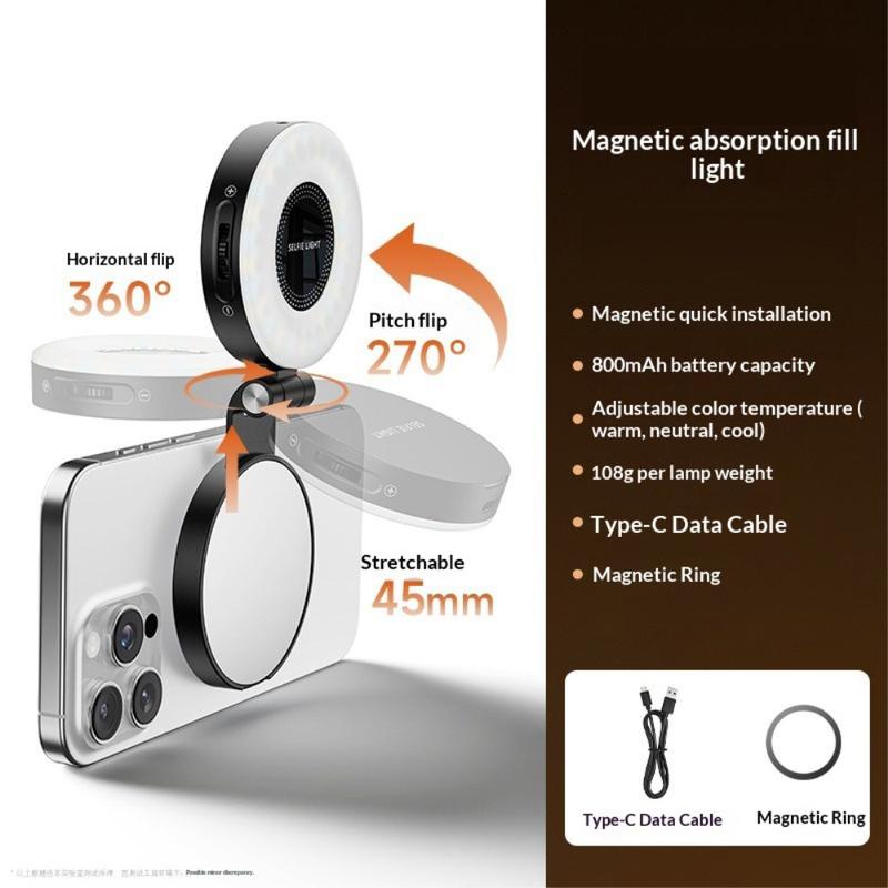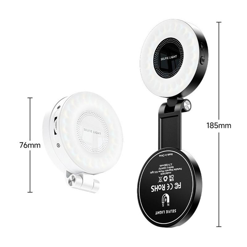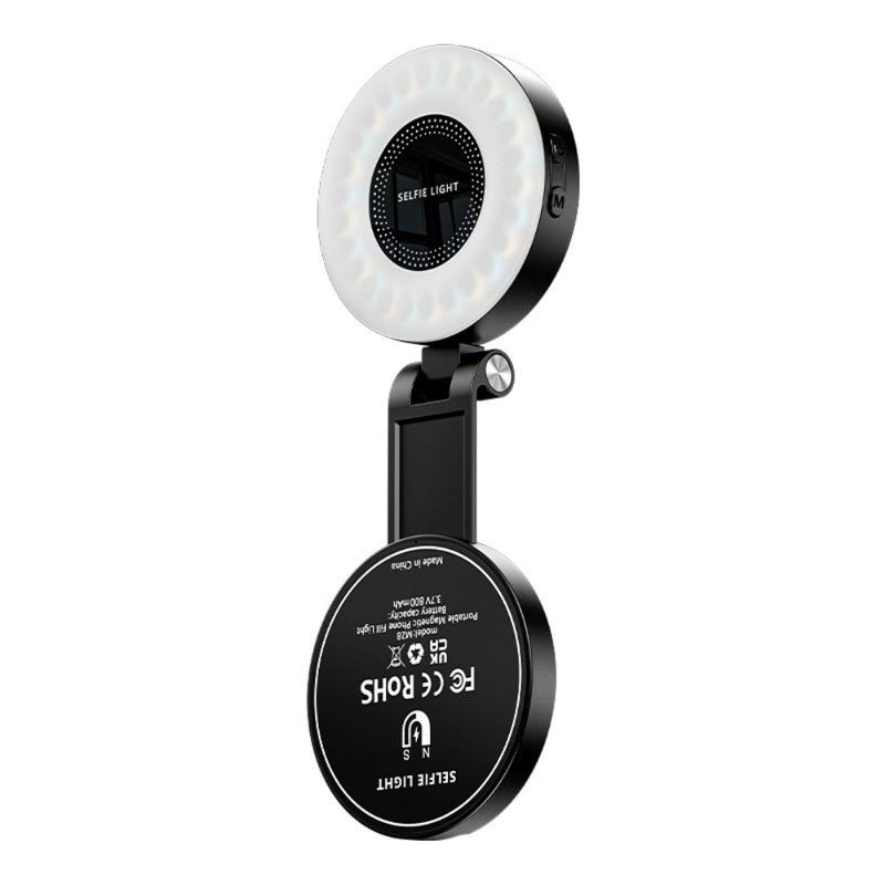 The M28 magnetic pocket LED fill light is a compact, handheld lighting tool designed for creators, photographers and anyone who wants perfect illumination on the go. Its built-in LED system supports three adjustable colour temperatures, allowing you to fine-tune the lighting for warm, neutral or cool tones depending on the scene. The integrated high-definition mirror makes it easy to preview your look or shooting angle in real time, while the magnetic attachment provides effortless mounting on smartphones and other metal surfaces. With a lightweight 108 g design and rechargeable battery, this fill light is ideal for selfies, live streaming, outdoor shooting and travel content creation.